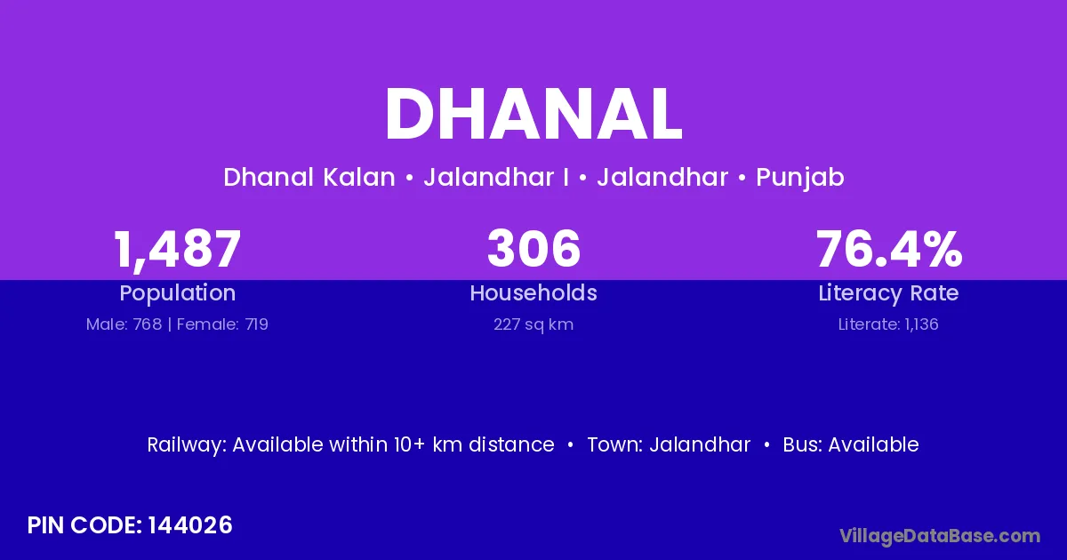 Jalandhar is the nearest town to Dhanal village for major economic activities