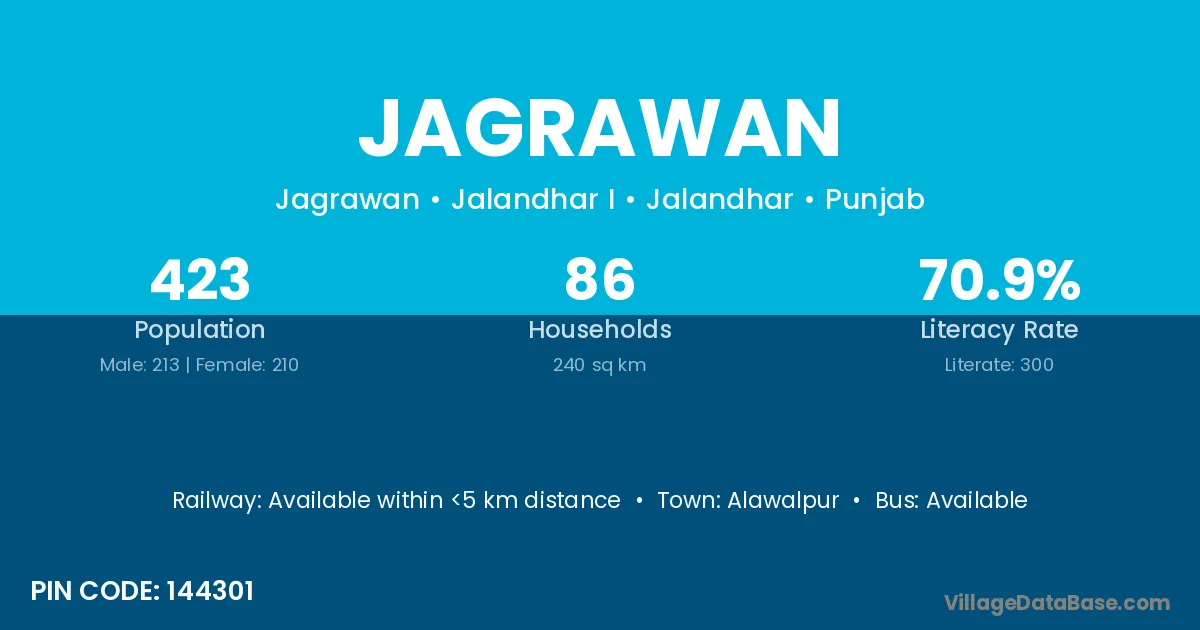 Alawalpur is the nearest town to Jagrawan village for major economic activities