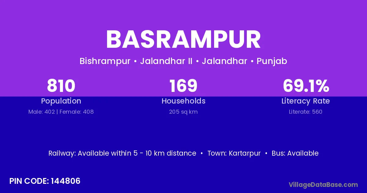 According to Census 2011 information, the village code of Basrampur village is 144806.