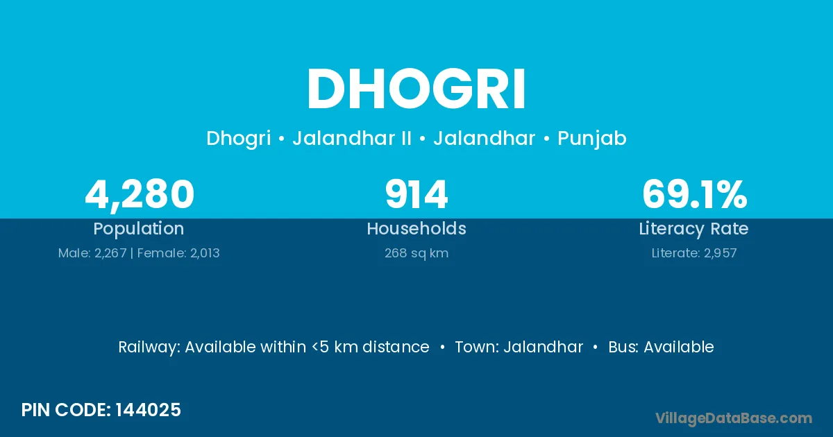 Jalandhar is the nearest town to Dhogri village for major economic activities