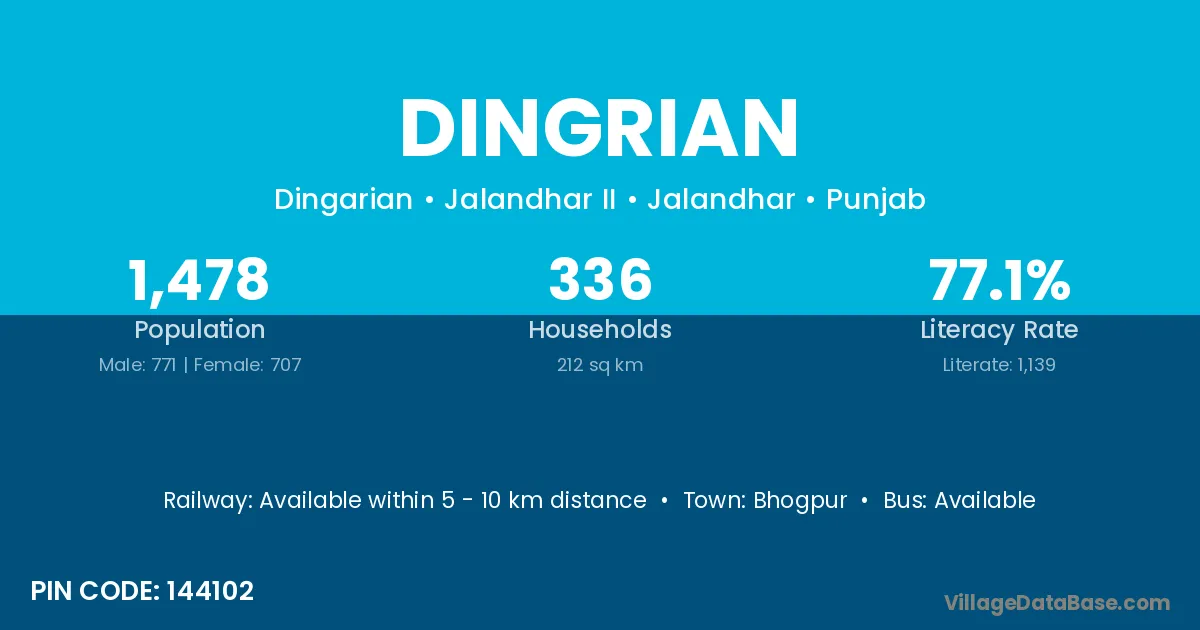 Bhogpur is the nearest town to Dingrian village for major economic activities