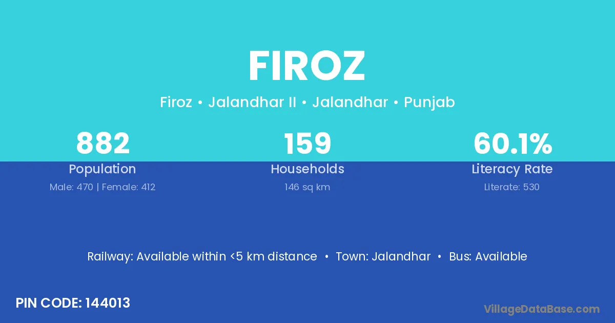 Jalandhar is the nearest town to Firoz village for major economic activities
