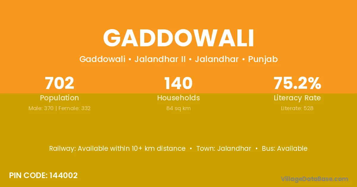 According to Census 2011 information, the village code of Gaddowali village is 144002.