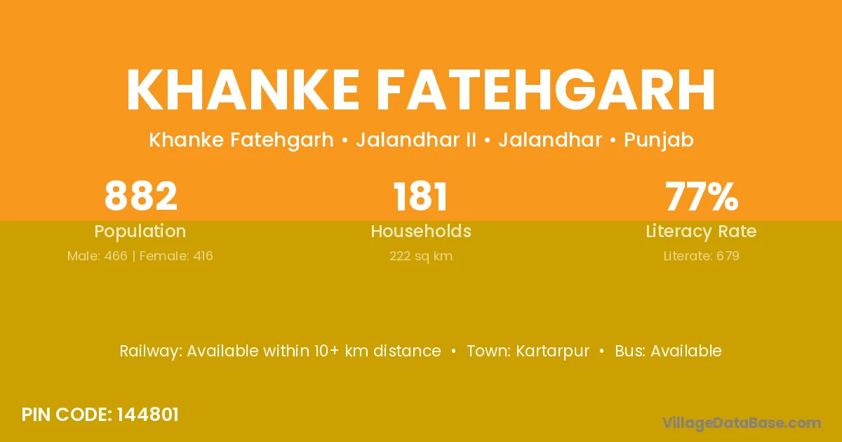 According to Census 2011 information, the village code of Khanke Fatehgarh village is 144801.