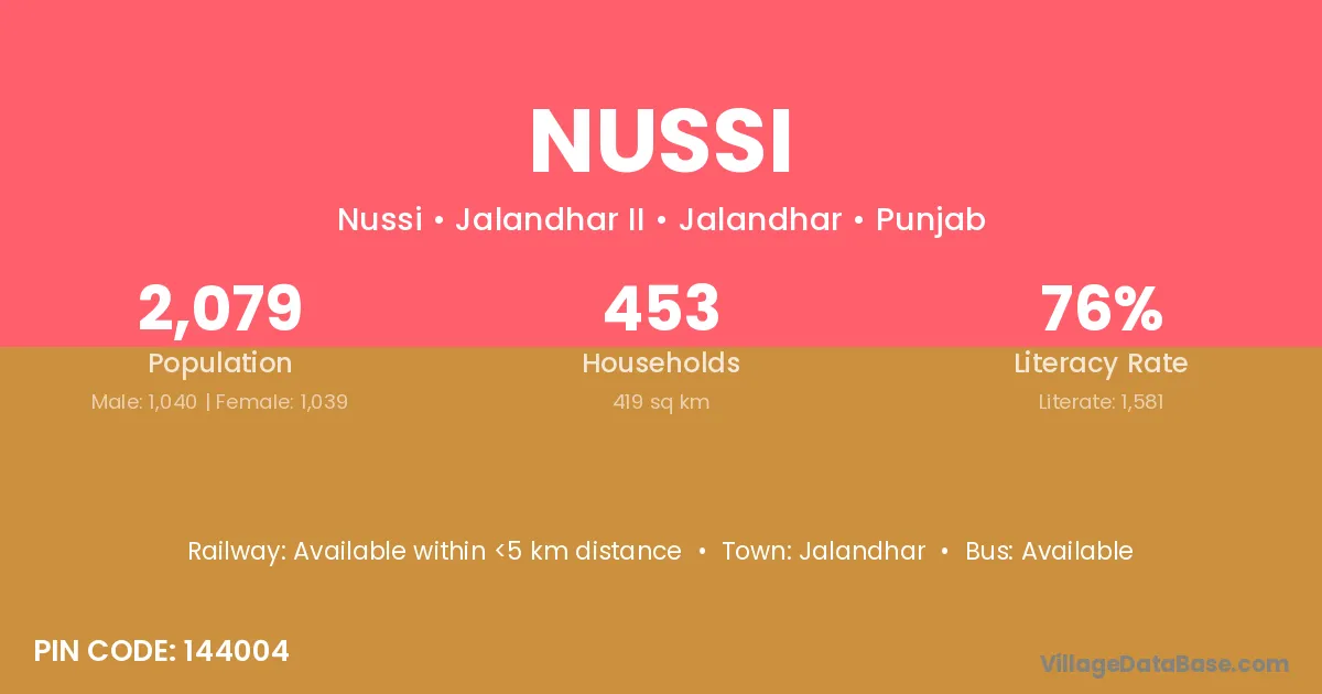Jalandhar is the nearest town to Nussi village for major economic activities