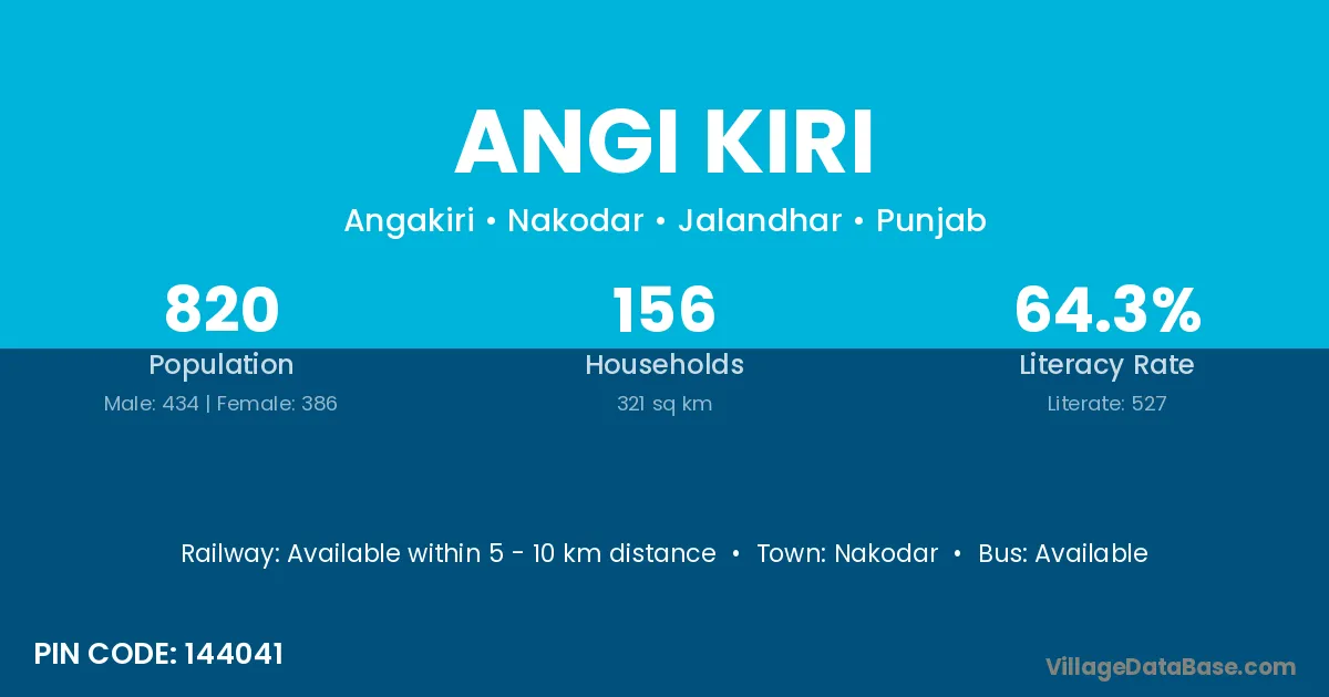 Nakodar is the nearest town to Angi Kiri village for major economic activities