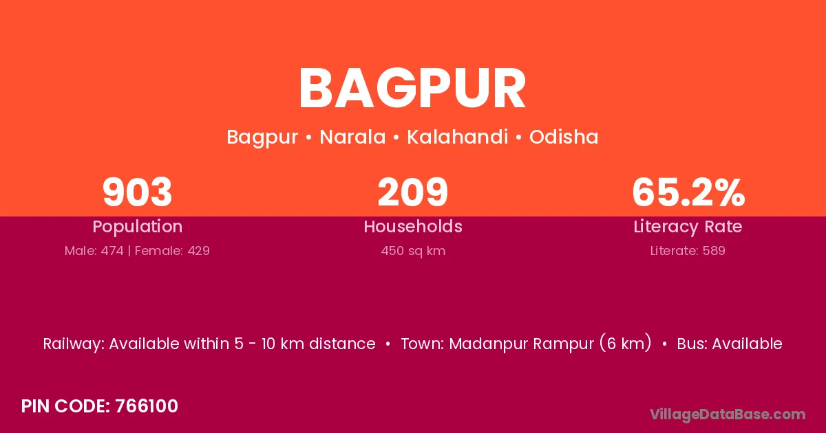 The literacy rate of Bagpur village is 72.20%. Male literacy stands at 71.88% and female literacy at 72.52%.