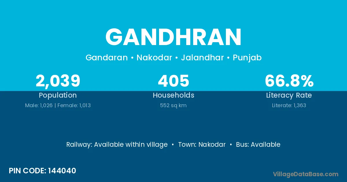 According to Census 2011 information, the village code of Gandhran village is 144040.