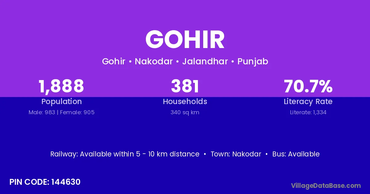 Nakodar is the nearest town to Gohir village for major economic activities