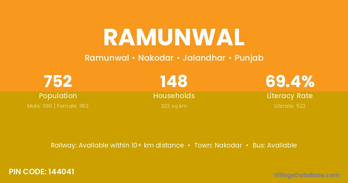 Nakodar is the nearest town to Ramunwal village for major economic activities