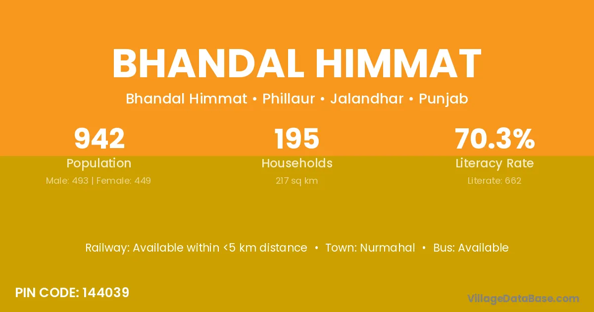 According to Census 2011 information, the village code of Bhandal Himmat village is 144039.