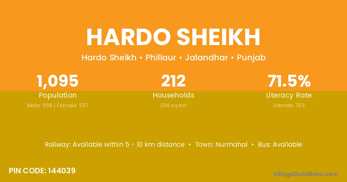 Hardo Sheikh village has a total population of 1,095 people, of which 558 are males and 537 are females.