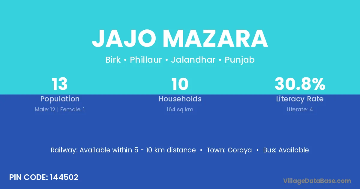 Goraya is the nearest town to Jajo Mazara village for major economic activities