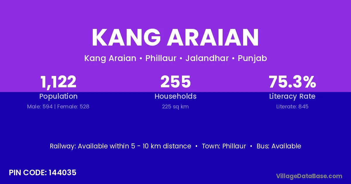 Phillaur is the nearest town to Kang Araian village for major economic activities