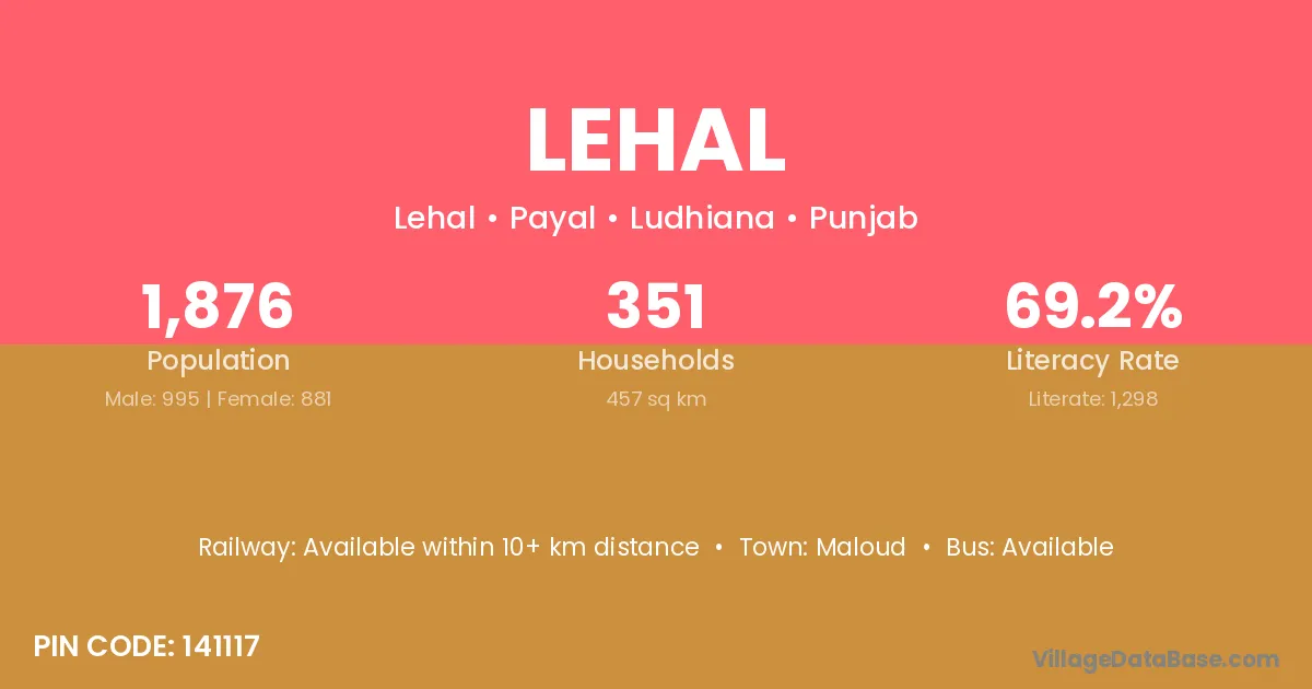 According to Census 2011 information, the village code of Lehal village is 144502.