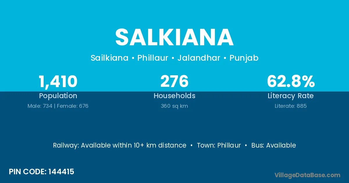 Phillaur is the nearest town to Salkiana village for major economic activities