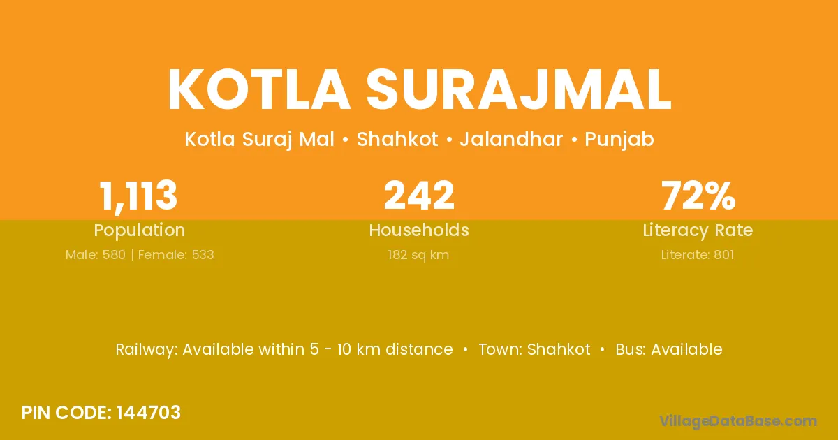 There are approximately 242 households in Kotla Surajmal village.