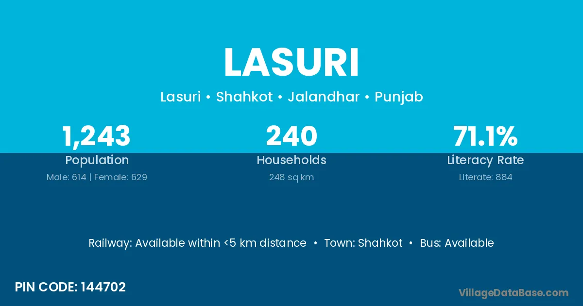Shahkot is the nearest town to Lasuri village for major economic activities