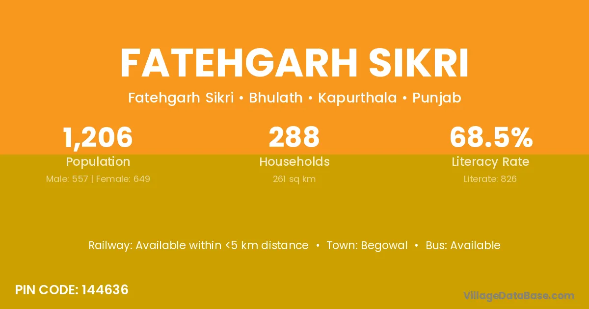 Begowal is the nearest town to Fatehgarh Sikri village for major economic activities