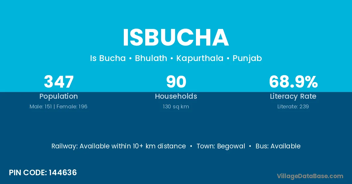 Begowal is the nearest town to Isbucha village for major economic activities