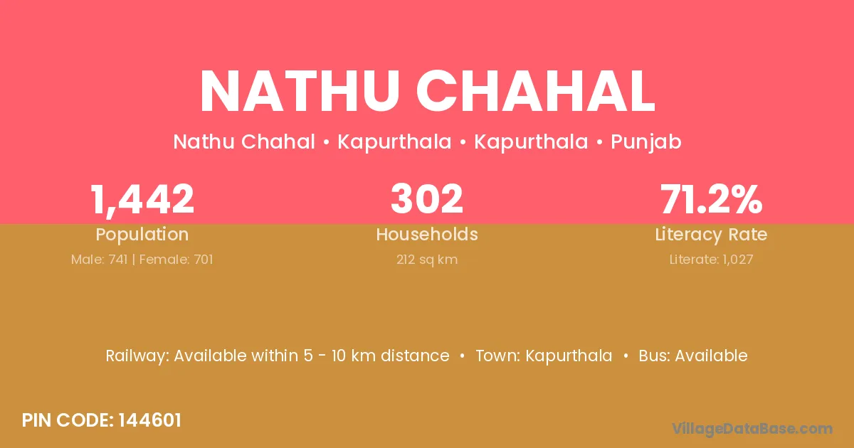 Kapurthala is the nearest town to Nathu Chahal village for major economic activities