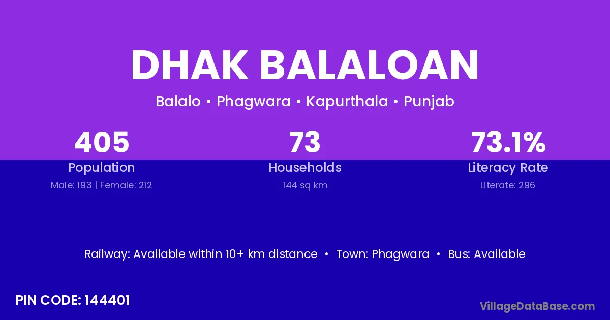 Phagwara is the nearest town to Dhak Balaloan village for major economic activities