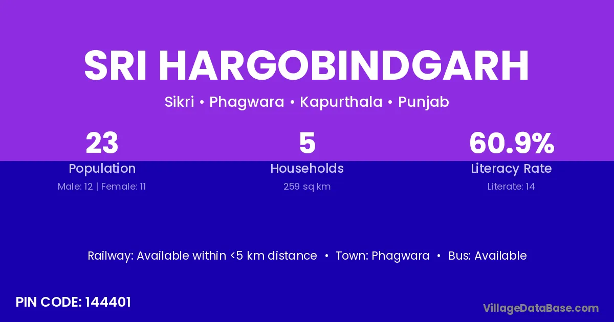 Phagwara is the nearest town to Sri Hargobindgarh village for major economic activities