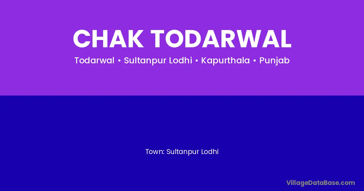 Sultanpur Lodhi is the nearest town to Chak Todarwal village for major economic activities