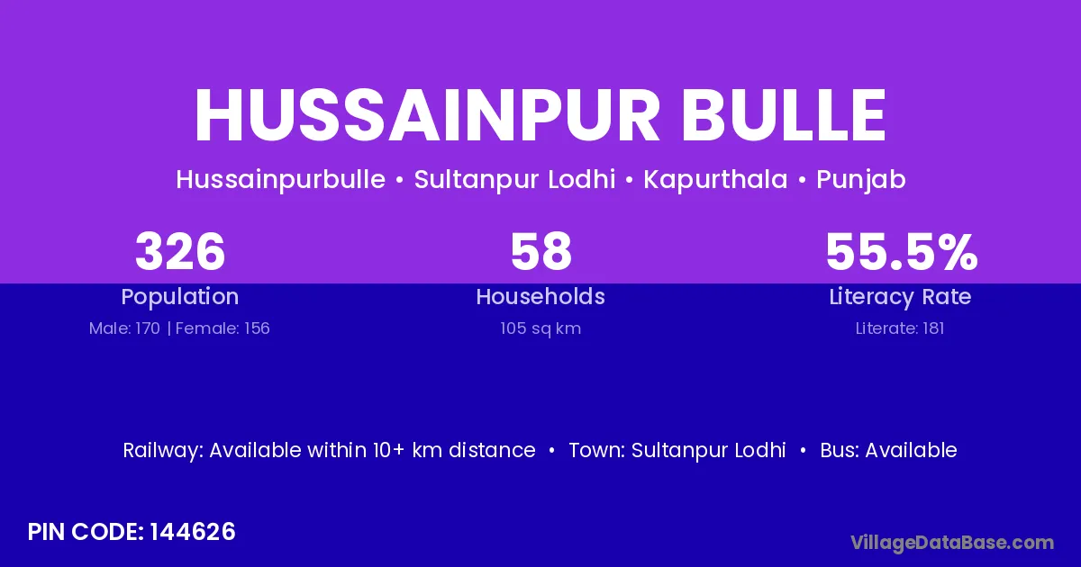 According to Census 2011 information, the village code of Hussainpur Bulle village is 144626.