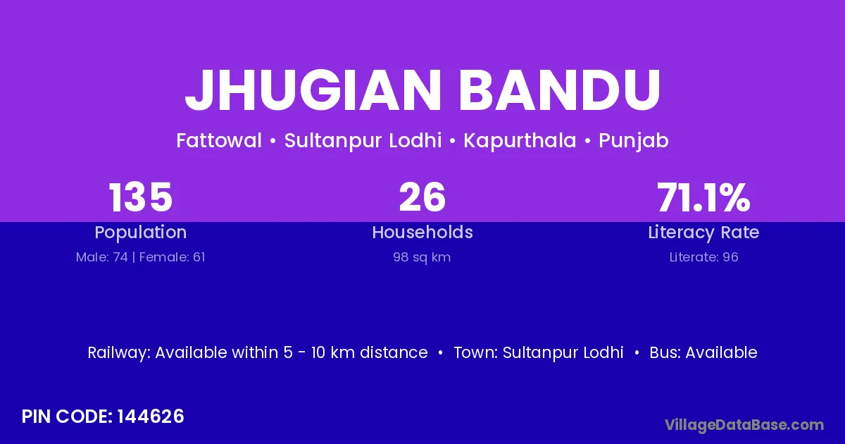 Sultanpur Lodhi is the nearest town to Jhugian Bandu village for major economic activities