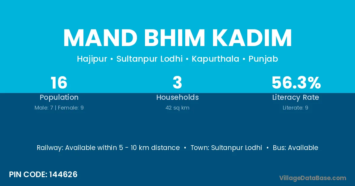 Sultanpur Lodhi is the nearest town to Mand Bhim Kadim village for major economic activities