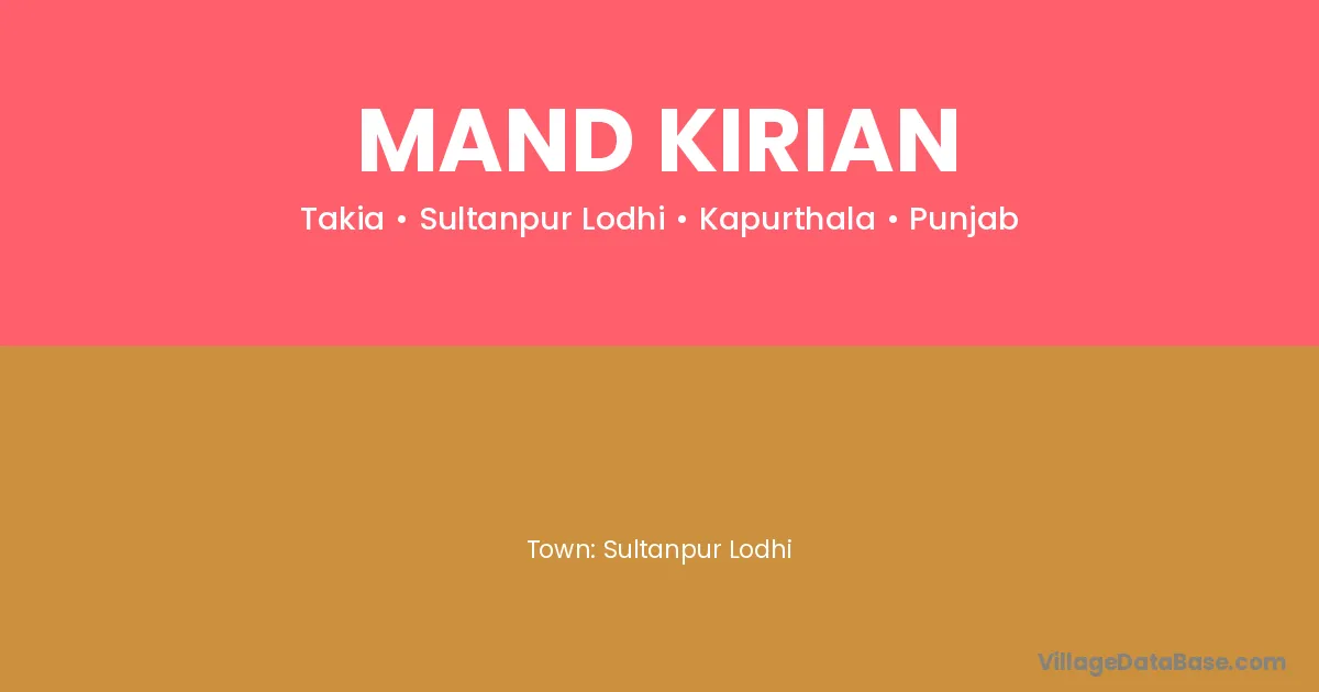 Sultanpur Lodhi is the nearest town to Mand Kirian village for major economic activities
