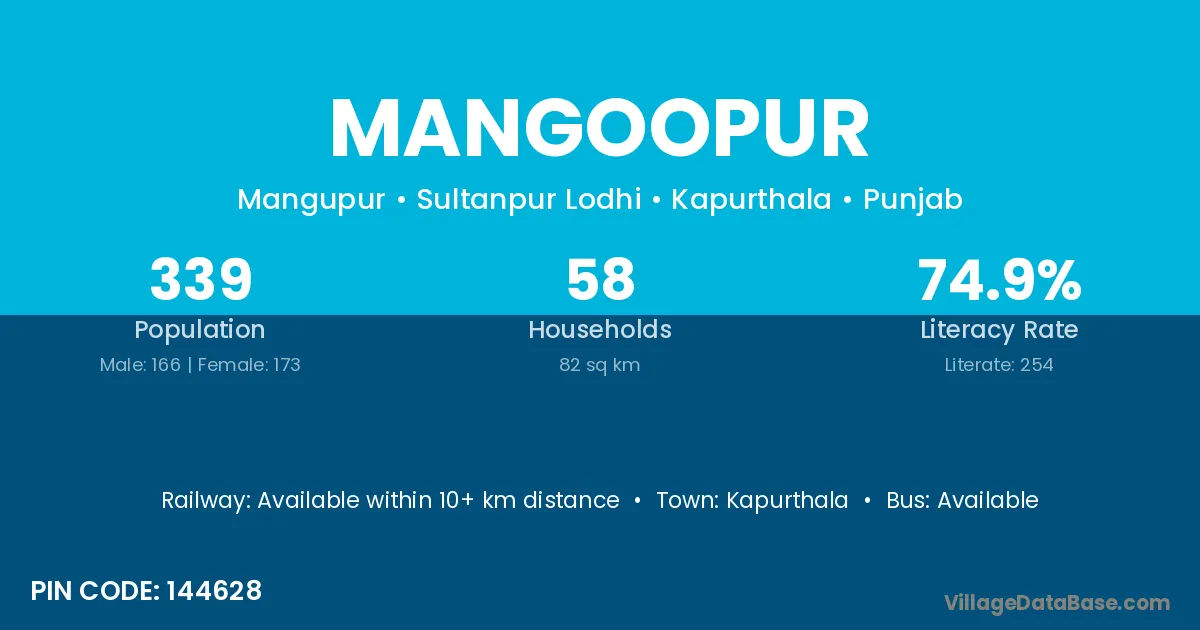 Kapurthala is the nearest town to Mangoopur village for major economic activities