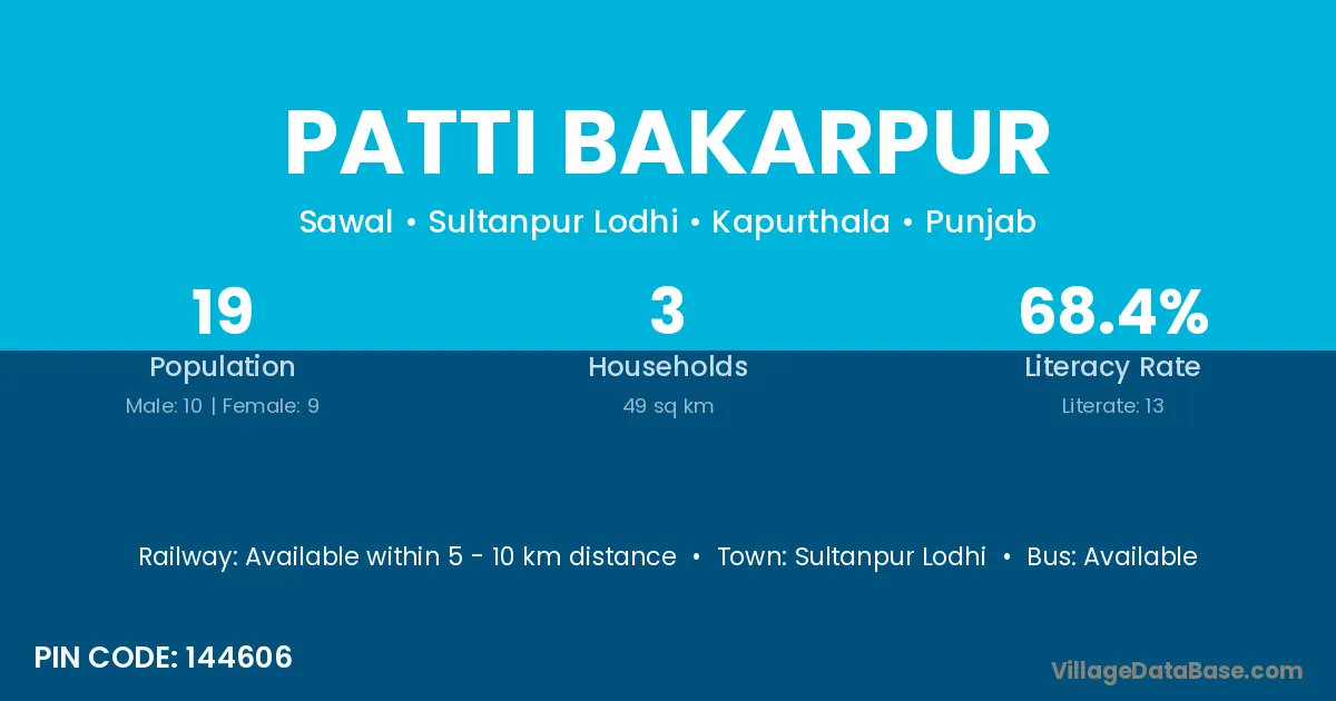 According to Census 2011 information, the village code of Patti Bakarpur village is 144606.