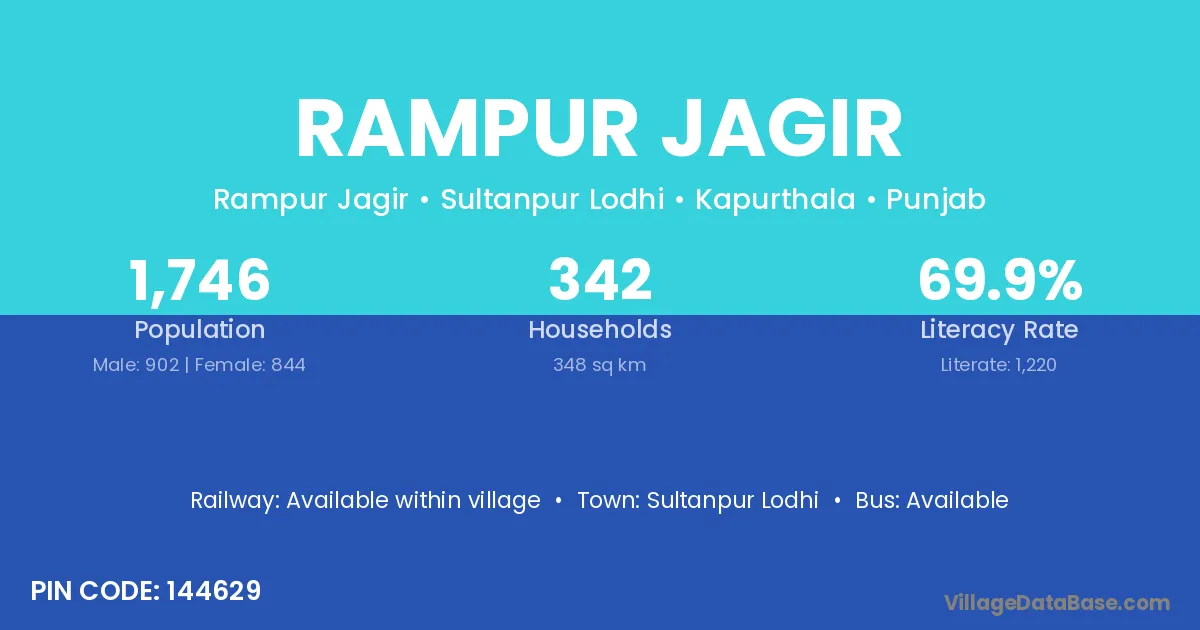 Sultanpur Lodhi is the nearest town to Rampur Jagir village for major economic activities