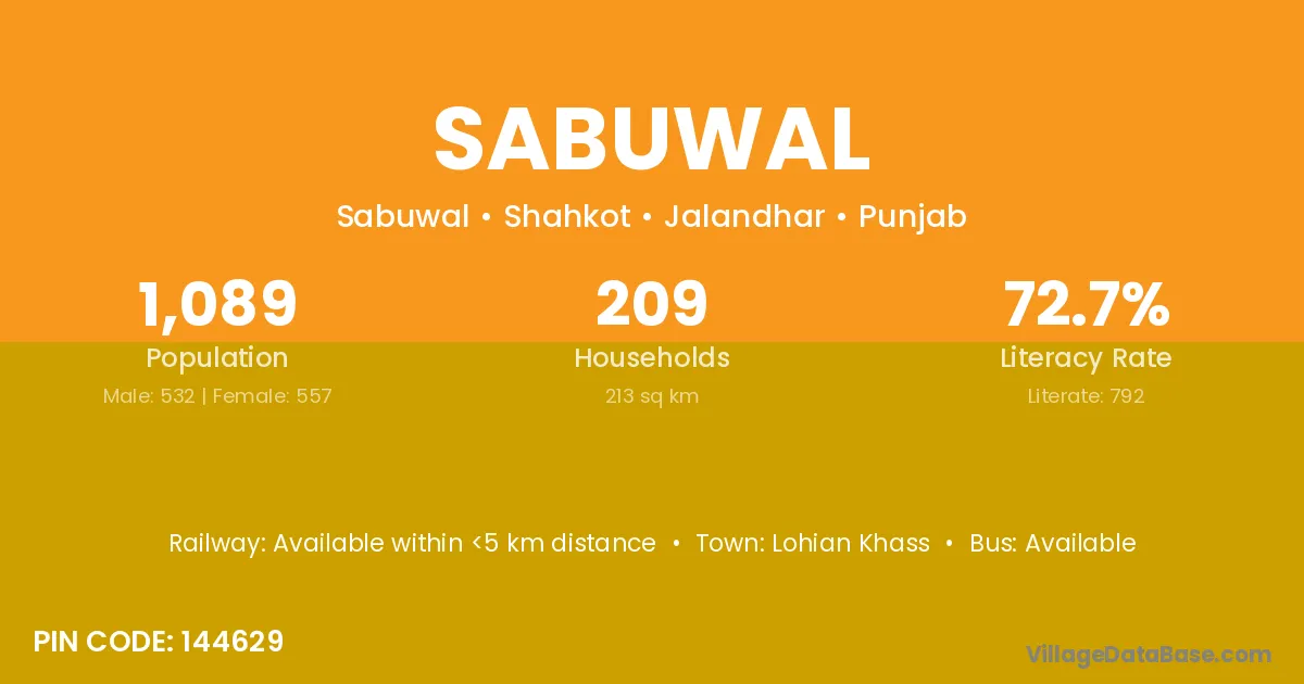 According to Census 2011 information, the village code of Sabuwal village is 144628.