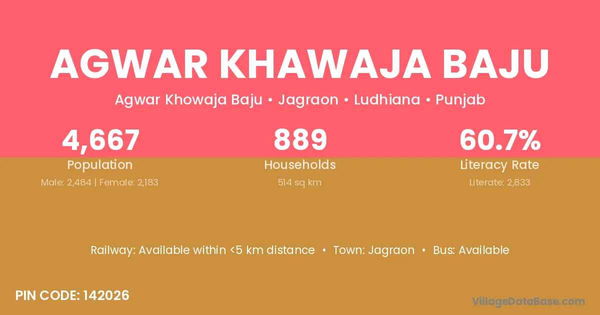 Agwar Khawaja Baju village has a total population of 4,667 people, of which 2,484 are males and 2,183 are females.