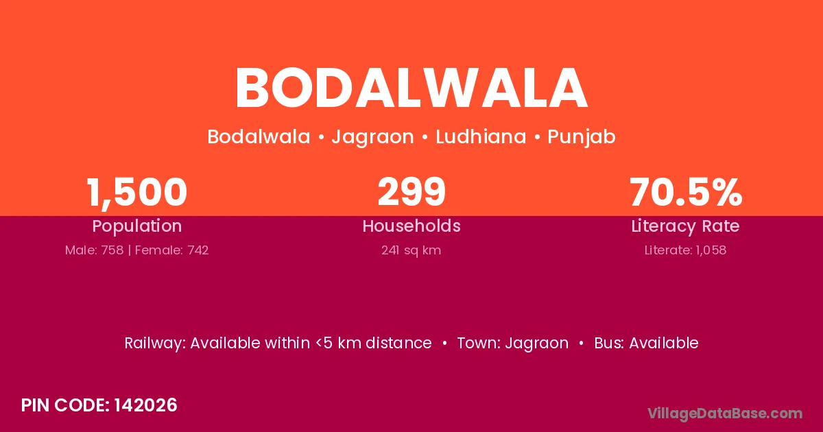 Jagraon is the nearest town to Bodalwala village for major economic activities