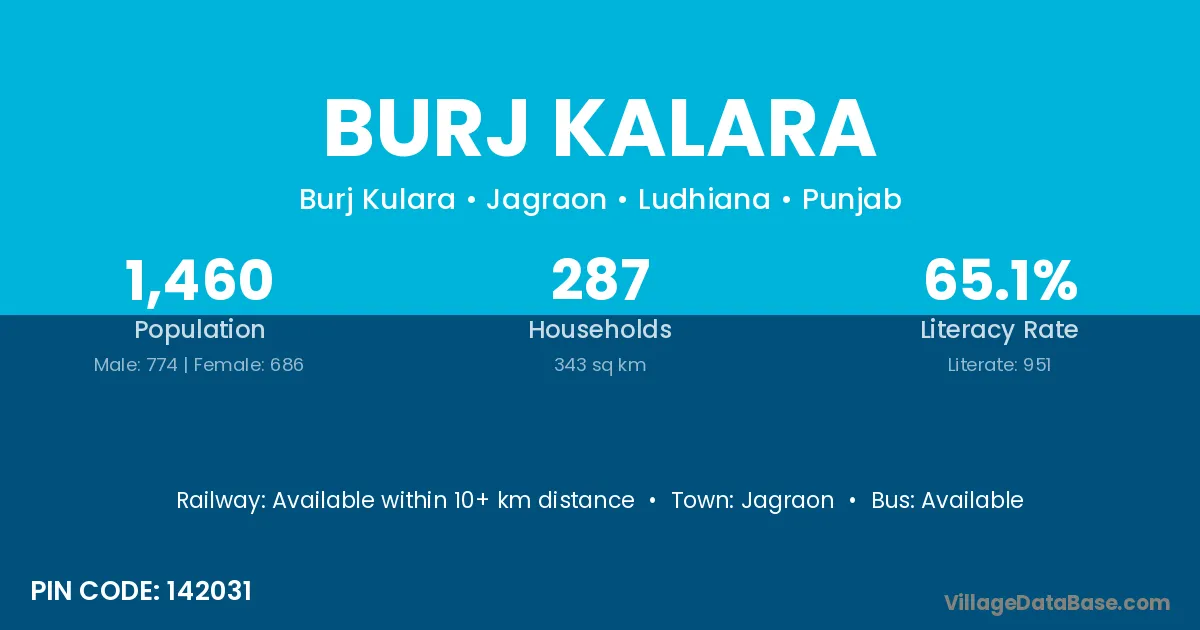Jagraon is the nearest town to Burj Kalara village for major economic activities