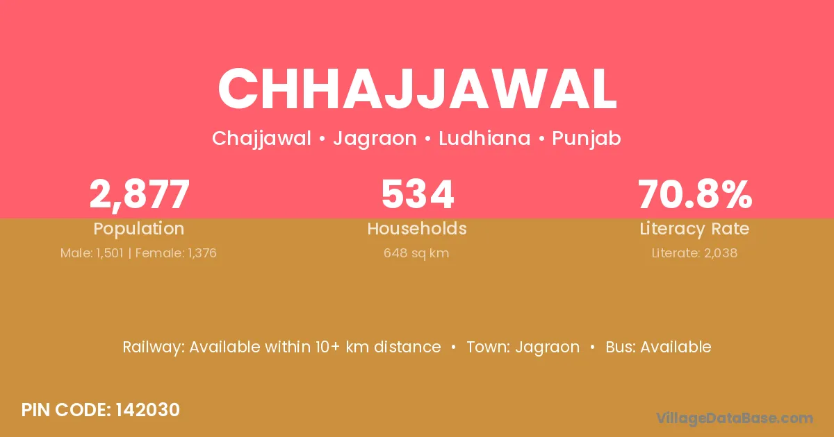 Jagraon is the nearest town to Chhajjawal village for major economic activities