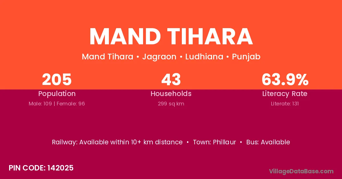 Phillaur is the nearest town to Mand Tihara village for major economic activities