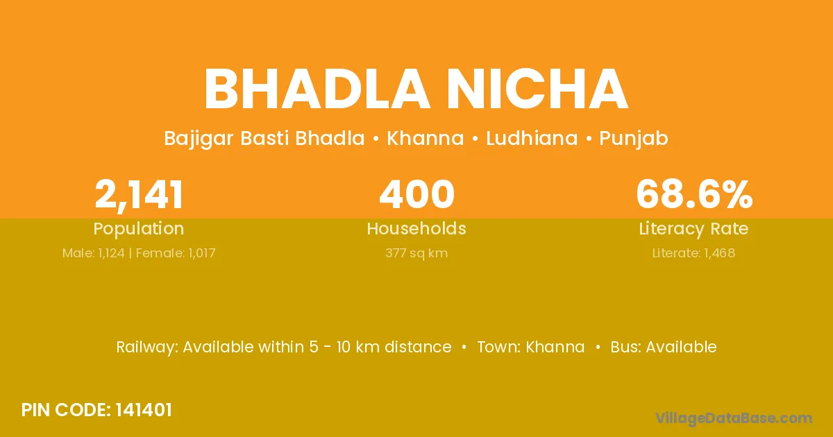 Khanna is the nearest town to Bhadla Nicha village for major economic activities