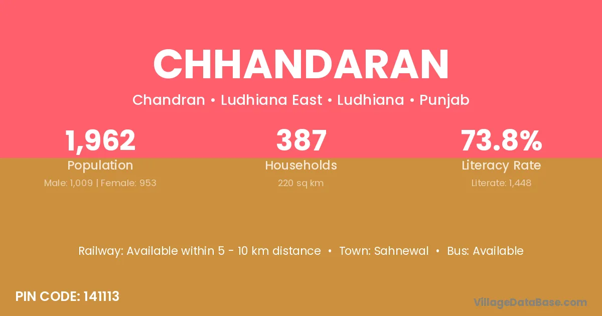 Sahnewal is the nearest town to Chhandaran village for major economic activities