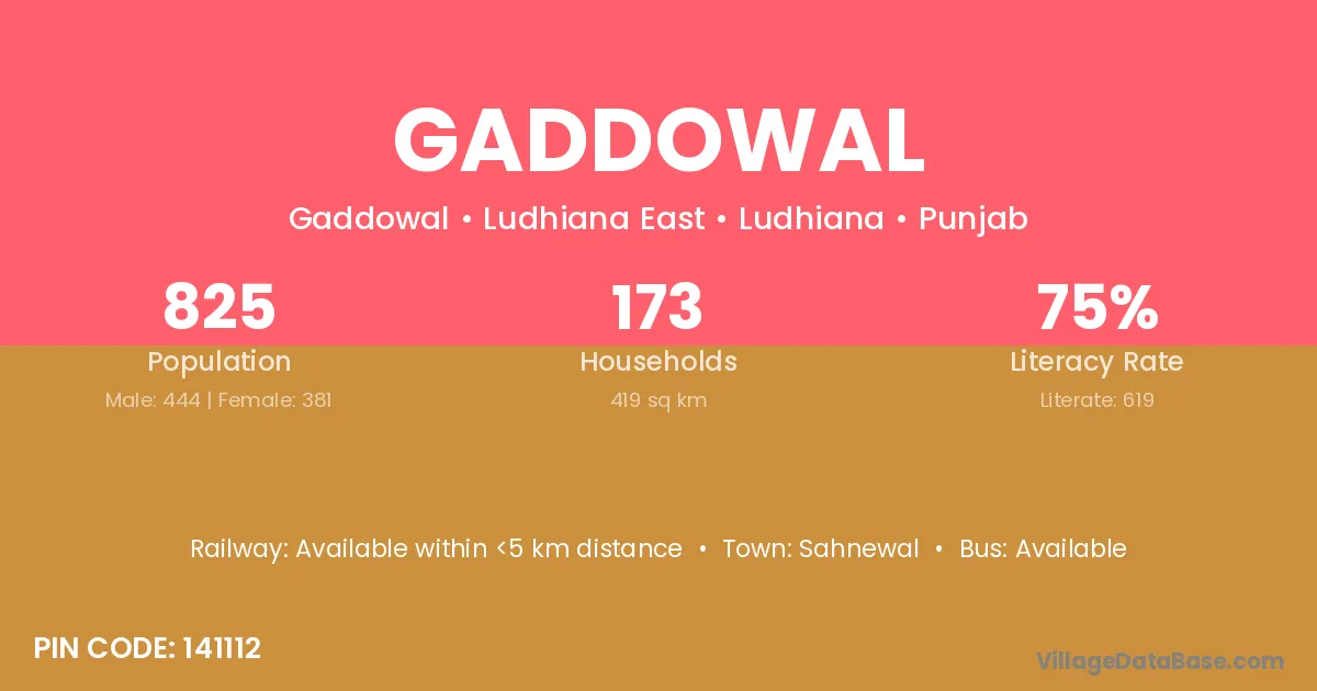 Gaddowal village has a total population of 825 people, of which 444 are males and 381 are females.