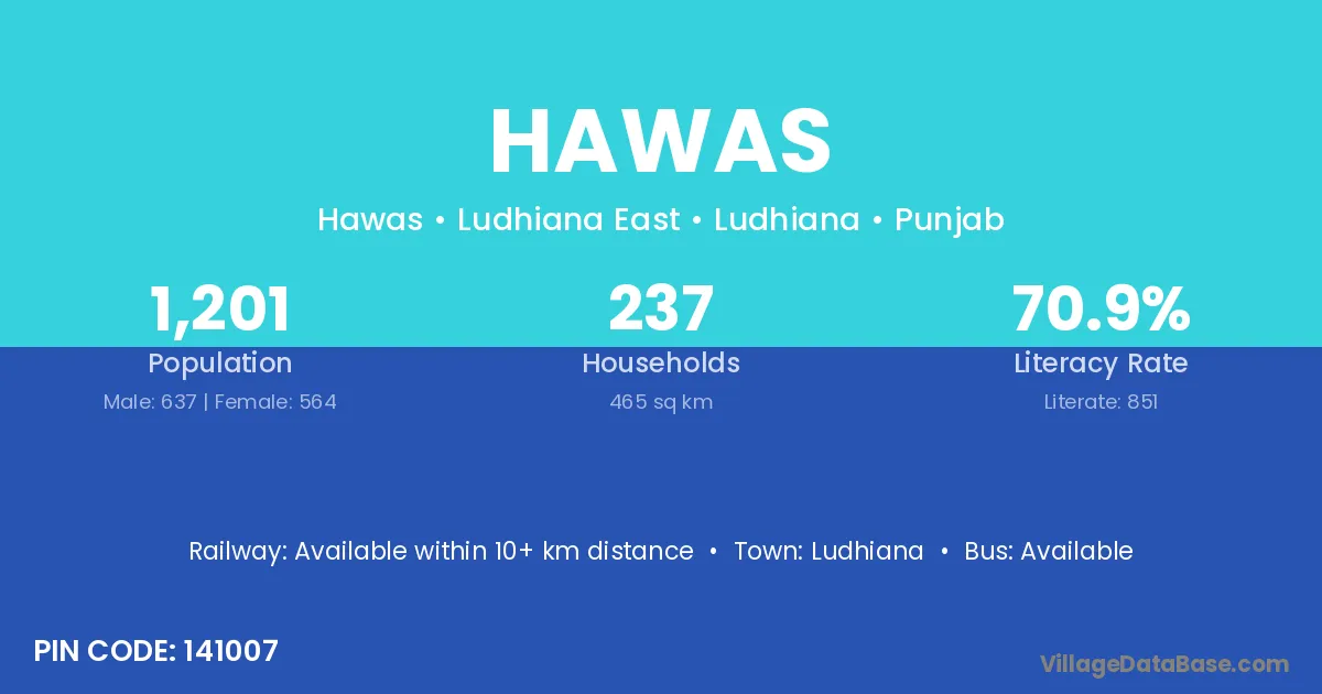 Hawas village has a total population of 1,201 people, of which 637 are males and 564 are females.