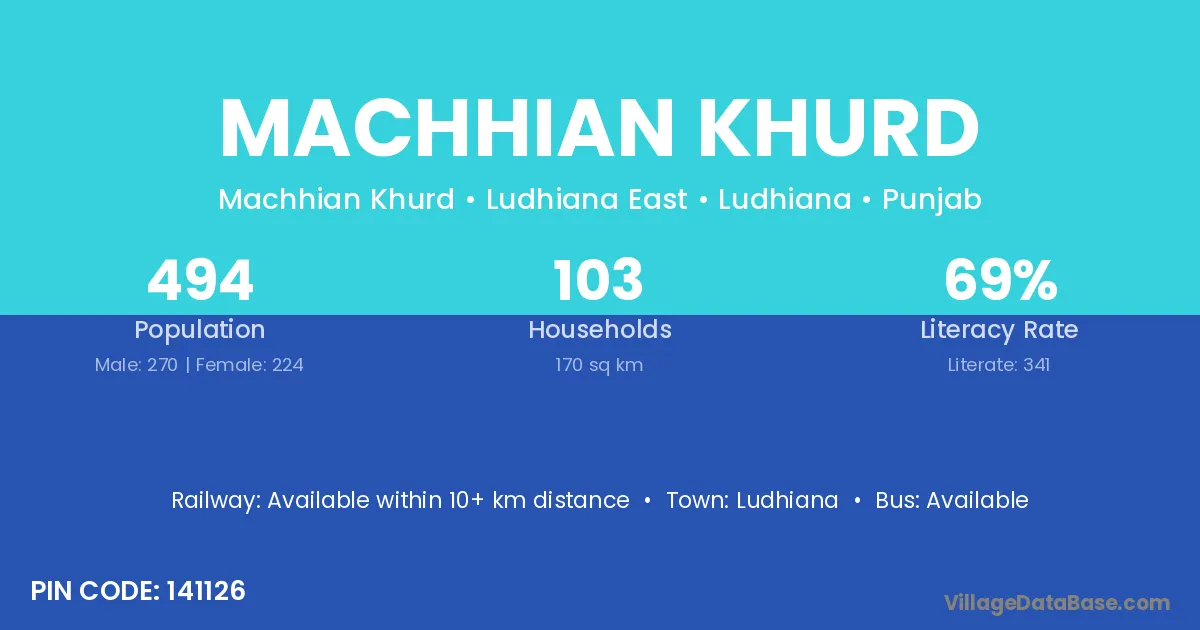 Ludhiana is the nearest town to Machhian Khurd village for major economic activities