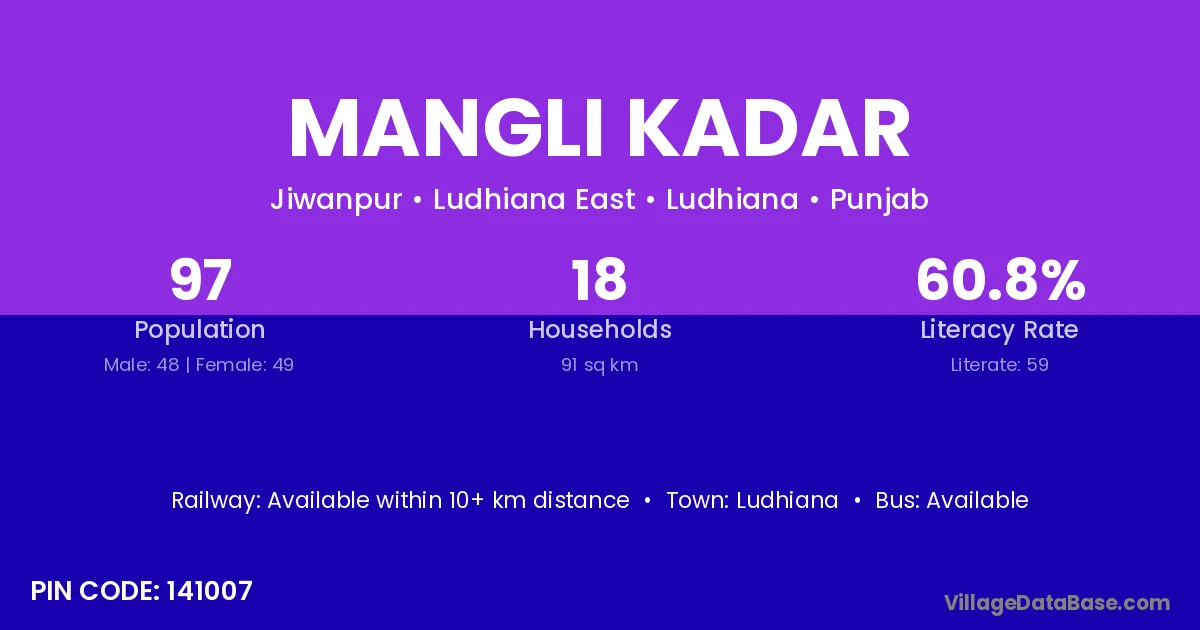 Ludhiana is the nearest town to Mangli Kadar village for major economic activities
