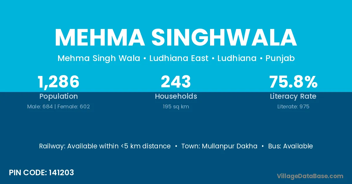 Mullanpur Dakha is the nearest town to Mehma Singhwala village for major economic activities