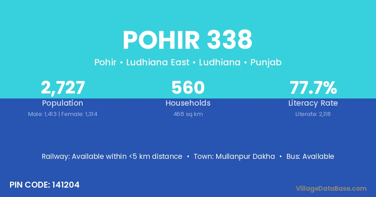 Mullanpur Dakha is the nearest town to Pohir 338 village for major economic activities