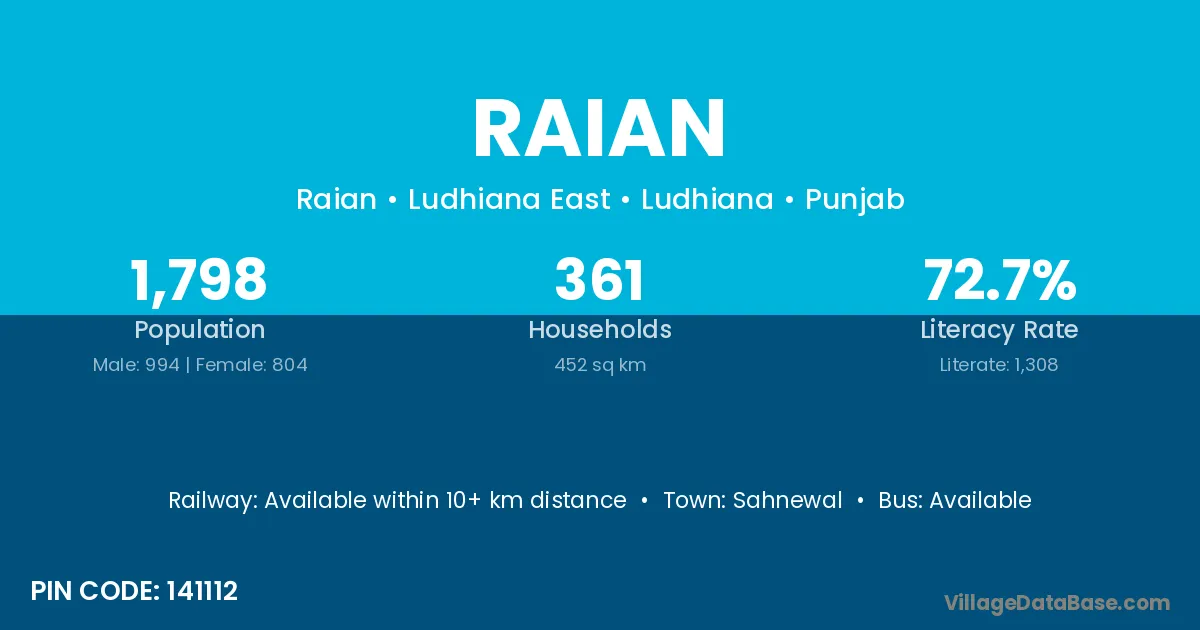Sahnewal is the nearest town to Raian village for major economic activities